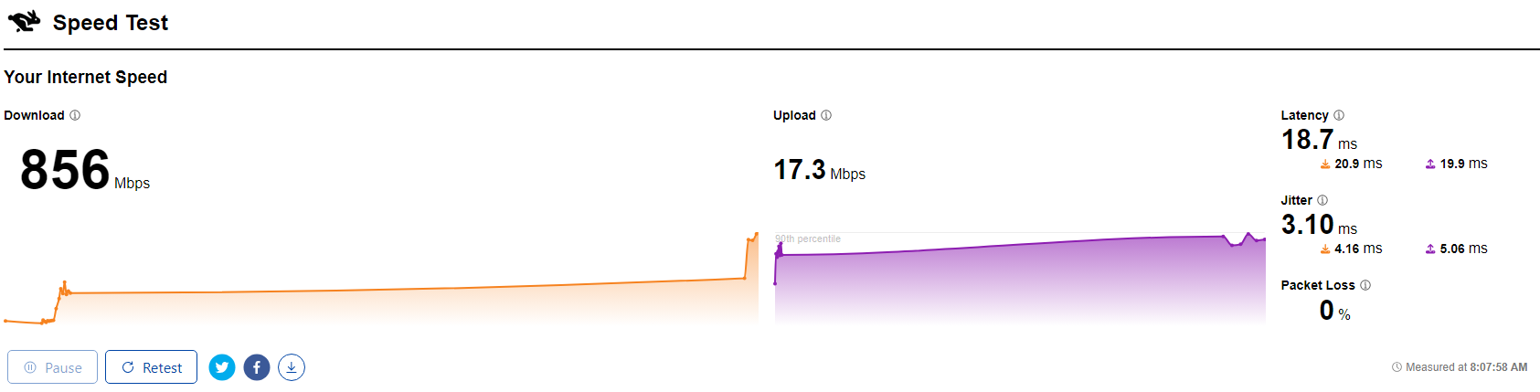 - Latency should be under 100ms (it tests your nearest Cloudflare server)